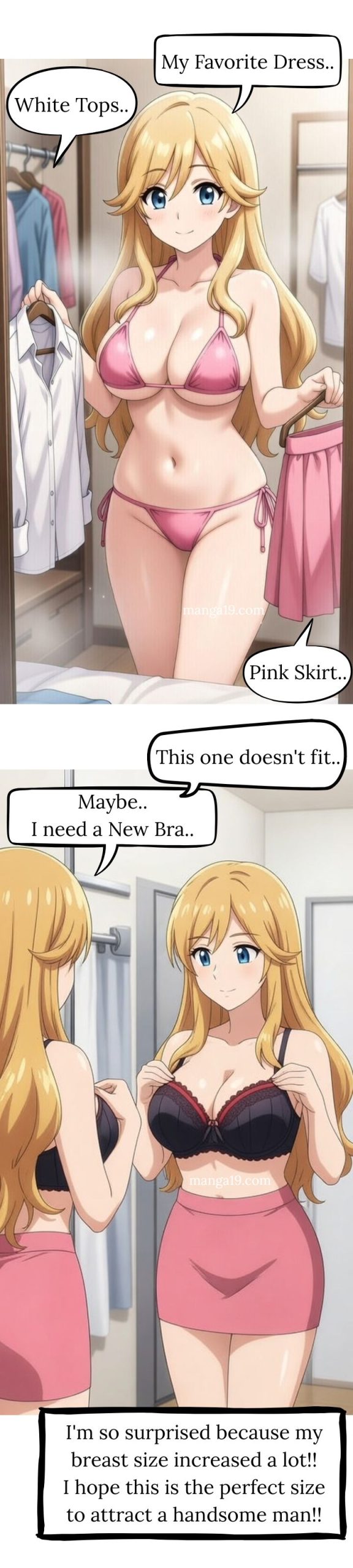 (Eliana) I’m so surprised because my breast size increased a lot!! I hope this is the perfect size to attract a handsome man!!