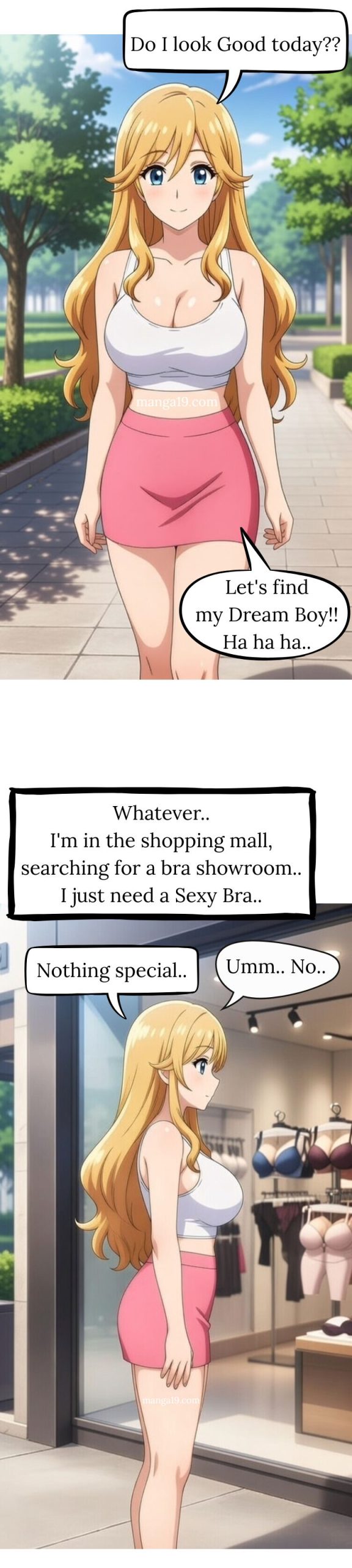 (Eliana) Whatever.. I’m in the shopping mall, searching for a bra showroom.. I just need a Sexy Bra..